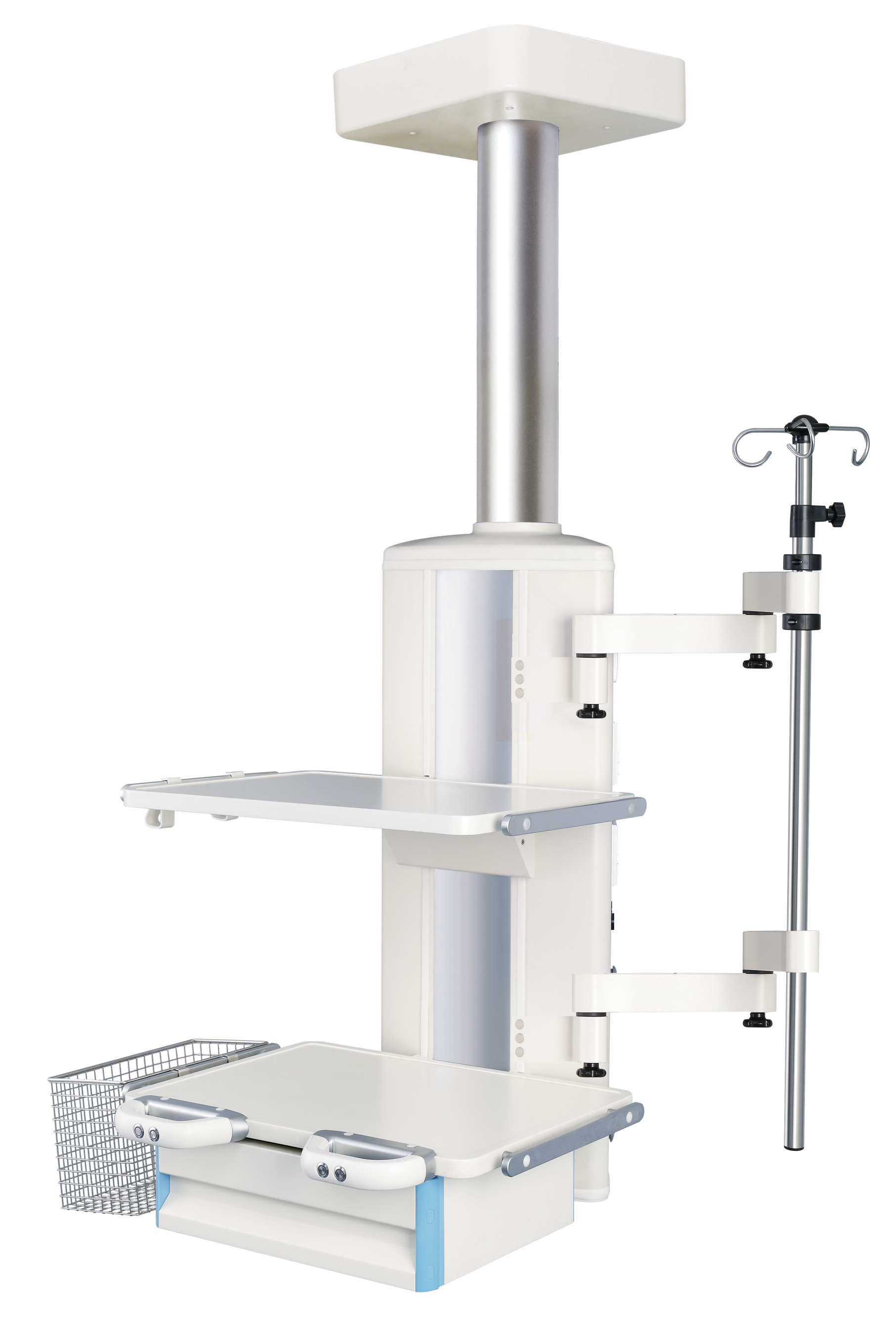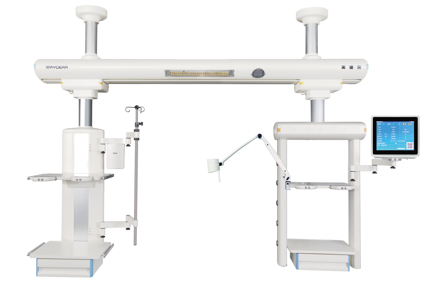 ICU 干濕分離旋臂吊橋 適用于醫(yī)院ICU病房,是現(xiàn)代重癥監(jiān)護(hù)病房必備的醫(yī)療搶救輔助設(shè)備,主要由橋架,干段和濕段組成。其特點(diǎn)在于合理的干濕分離結(jié)構(gòu),濕段配置升降靈活的輸液架和輸液泵架。干濕段配置有可升降調(diào)節(jié)的醫(yī)療監(jiān)護(hù)儀器平臺,在干濕段上分別將氧氣,空氣,吸引,強(qiáng)弱電,網(wǎng)絡(luò)輸入終端配置在醫(yī)護(hù)人員抬手可及的塔體上。濕段采用懸臂結(jié)構(gòu),提高了治療空間,移動旋轉(zhuǎn)部分采用氣控制動防飄移,桁架中央配置一款環(huán)保,節(jié)能的LED照明治療。為臨床治療提供了照明解決方案,另外還可根據(jù)您的要求選配通信傳呼,監(jiān)控,可視電話